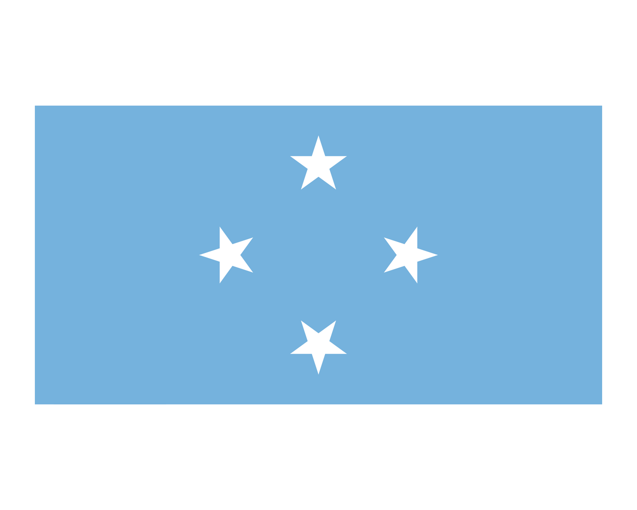 密克羅尼西亞聯(lián)邦(The Federated States of Micronesia),位于中部太平洋地區(qū),屬加羅林群島,首都帕利基爾。密克羅尼西亞聯(lián)邦國(guó)旗呈長(zhǎng)方形,長(zhǎng)與寬之比為19∶10。旗面為淺藍(lán)色,中間鑲有四顆白色五角星。淺藍(lán)色象征該國(guó)遼闊的海域,四顆星分別代表該國(guó)的四個(gè)州:科斯雷、波納佩、特魯克、雅浦。