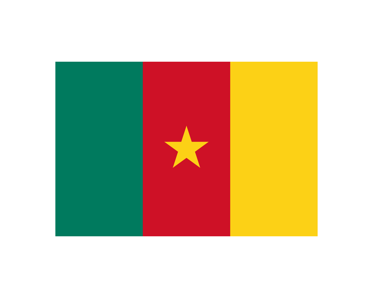 喀麥隆共和國通稱喀麥隆,是位于非洲中西部的單一制共和國,首都是雅溫得。喀麥隆國旗采用于1975年5月20日,是一面三色旗。由綠、紅、黃三直條組成,中有一黃星,星的尺寸沒有明確規定,故有所不同,但一定在中央。國旗呈長方形,長與寬之比為3∶2。從左至右由綠、紅、黃三個平行相等的豎長方形組成,紅色部分中間有一顆黃色五角星。綠色象征南部赤道雨林的熱帶植物,還象征人民對幸福未來的希望;黃色象征北部草原和礦產資源,也象征給人民帶來幸福的太陽光輝;紅色象征聯合統一的力量。五角星象征國家的統一。