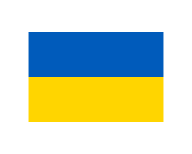烏克蘭(Ukraine),位于歐洲東部,東接俄羅斯、南瀕黑海,北與白俄羅斯毗鄰、西與波蘭、斯洛伐克、匈牙利、羅馬尼亞和摩爾多瓦諸國相連,首都為基輔。烏克蘭國旗呈長方形,由上藍下黃兩塊平行相等的橫長方形組成,長與寬之比為3∶2。烏克蘭曾于1917年建立烏克蘭蘇維埃社會主義共和國,1922年成為原蘇聯的一個加盟共和國,1952年起采用和原蘇聯國旗相似的帶五角星及鐮刀、鐵錘圖案的紅旗,只是旗面下部為藍色寬邊。1991年宣布獨立,1992年恢復烏克蘭人民共和國的藍、黃兩色旗為國旗。