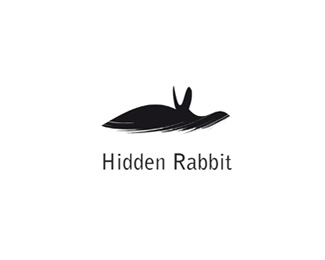 HIDDENRABBIT咖啡吧標志設計欣賞,融入兔子耳朵的抽象圖形是該標志的主識別圖形。