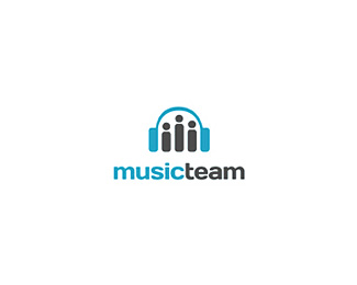 MUSICTEAM音樂(lè)團(tuán)隊(duì)標(biāo)志,音樂(lè)標(biāo)志與耳機(jī)和一群人。設(shè)計(jì)的垂直線(xiàn)也代表音頻電平。