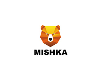 MISHKA幾何熊創(chuàng)意標(biāo)志設(shè)計(jì),使用幾何色彩堆疊出熊的面部層次,整體以棕色和橙色作為主識(shí)別色。