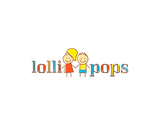 LOLLI&POPS兒童服裝品牌標(biāo)志設(shè)計,整體的的本色鮮亮,符合兒童人群的定位,使用牽手的小男孩和小女孩作為主識別圖形。