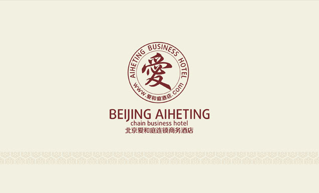 杭州尚宮品牌設計對北京愛和庭商務酒店進行的LOGO設計,主要以中文 愛字來進行的。