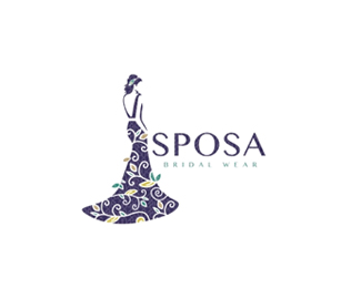 婚紗攝影公司logo設計使用新娘的背影素材,碎花的婚紗優雅而高貴,充滿浪漫的法蘭西風情。