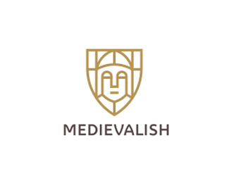 盾牌元素標(biāo)志設(shè)計(jì)采用了中世紀(jì)的表現(xiàn)手法,人物描繪以線條構(gòu)成,粗細(xì)均等的線條將人物和盾牌有效結(jié)合,標(biāo)志整體簡(jiǎn)潔對(duì)稱(chēng)。