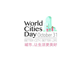 世界城市日圖標由聯合國人居署專家精心設計,分兩個部分:左上方是“世界城市日”的英文全稱,右上方的圖案以三幢建筑寓意城市,以三口之家代表生活在城市里的廣大居民,建筑周圍點綴著青草,象征著城市與環境的和諧共生;圖案下方用英文標注了“世界城市日”的日期。