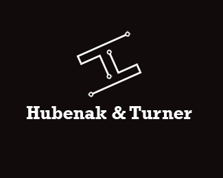 Hubenak Turner幾何圖形標志設計,以幾何線和點構成字母“H”和字母“T”,黑色和白色為主色調。