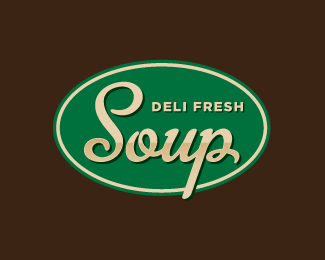 Deli Fresh Soup德利鮮湯餐飲標志設計,以字母“SOUP”作為該餐飲標志的主識別圖形,綠色為主識別色。