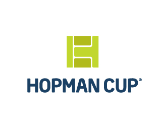 Hopman Cup霍普曼杯標(biāo)志設(shè)計(jì),以方形幾何塊組成成字母“H”和字母“C”的形狀,綠色為該標(biāo)志的主識別色。