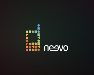 neevo手機移動通信創意標志設計欣賞,使用多彩的幾何圖形:三角形、圓形、正方形組合成手機圖形。