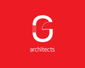 G architects摹建筑師標志設計欣賞,使用字母“G”作為該標志主識別圖形的創意原型,整體以紅色和白色的色彩組合作為主識別色。