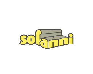Sofanni創(chuàng)意家具字母標(biāo)志設(shè)計(jì),以字母組合成具有空間感的沙發(fā)造型,整體以黃色為主色調(diào)。