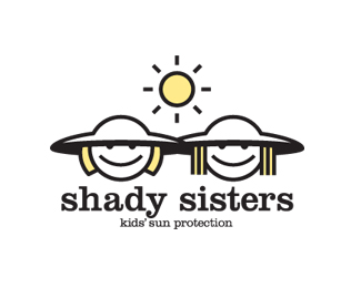 Shady Sisters雙胞胎姐妹標志設計,使用還斗笠的雙胞胎姐妹圖案作為主圖形,融入太陽的元素,以黃色作為主識別色。