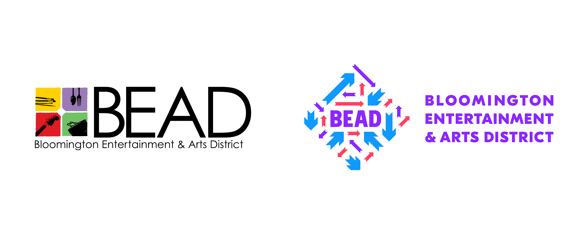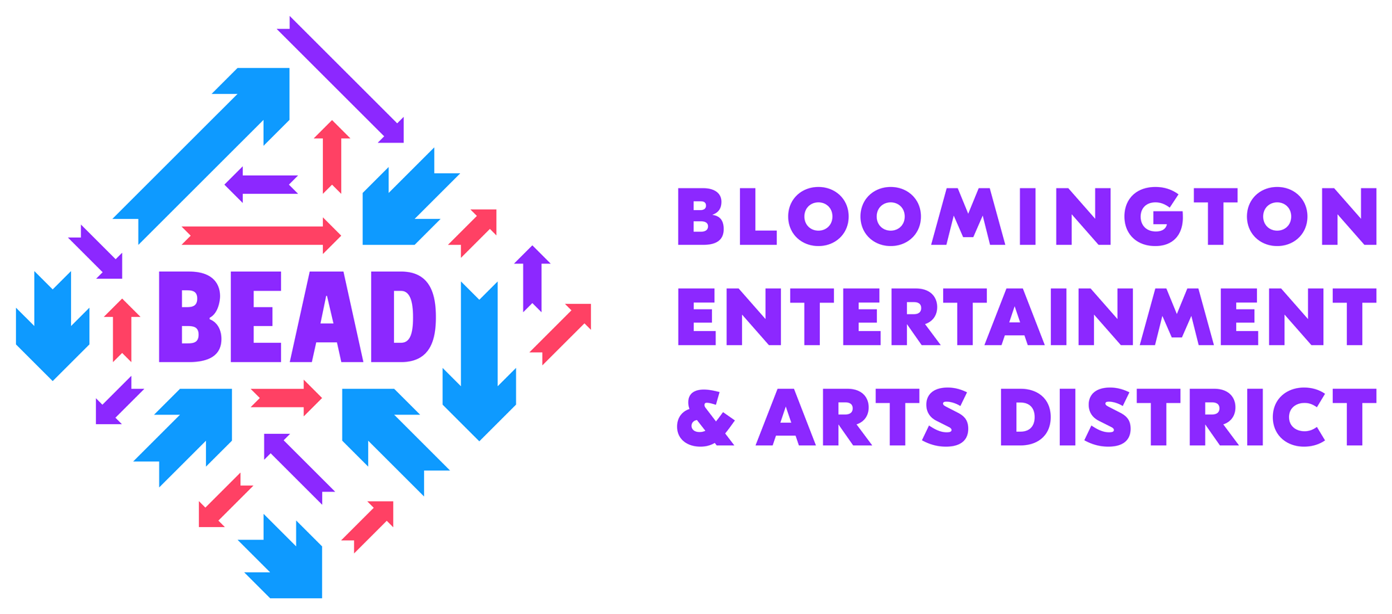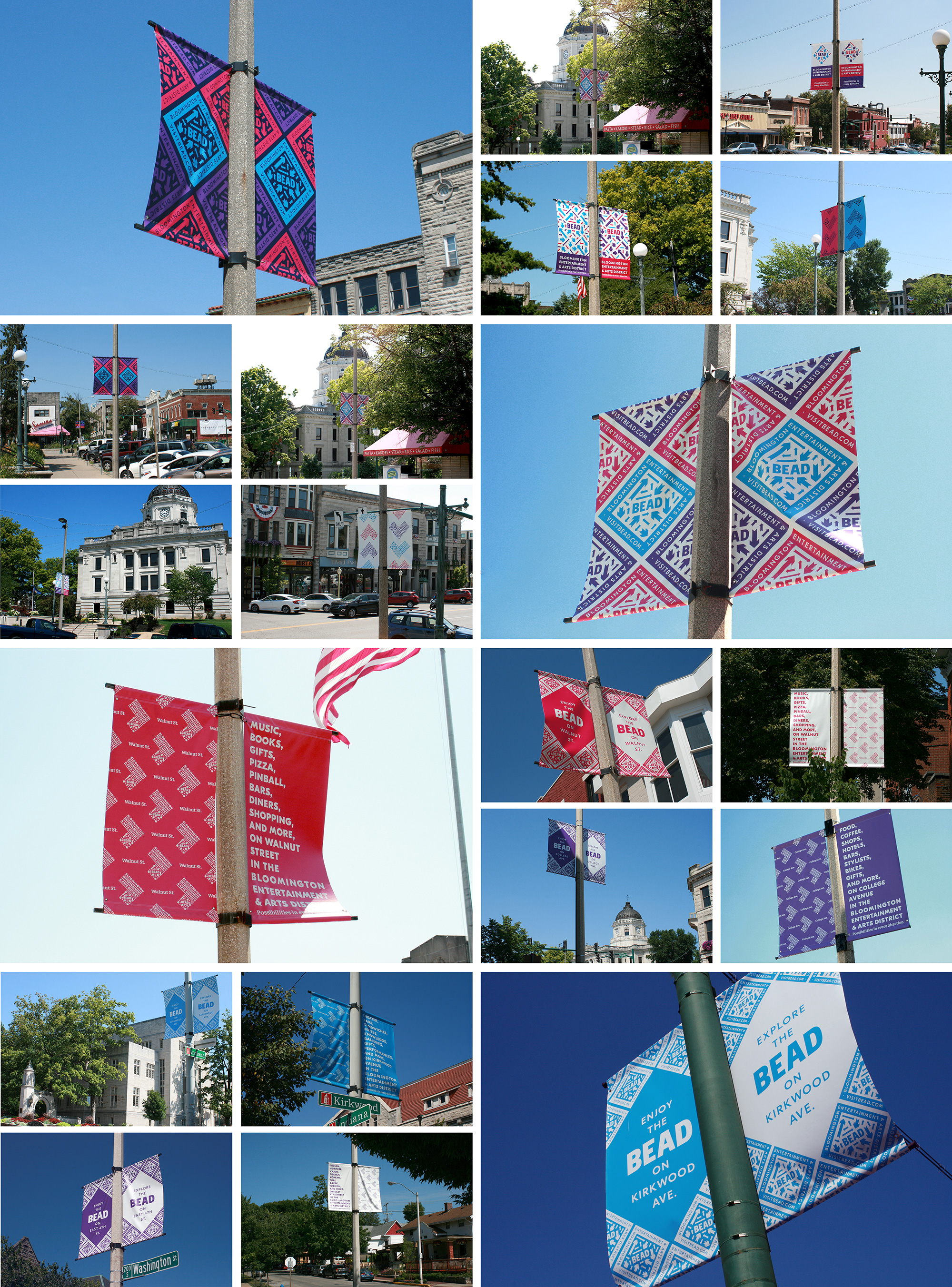 有什么大的地區,它真正居住在城市的中心,所以人們從所有分——北部,南部,東部,西部,和介于兩者之間的,召集在這個相對較小的區域,然后能夠分散在任何方向吃,喝,社交,商店,和/或享受現場表演。人們來自世界各地,一旦來到這里,就可以去任何地方,這種觀念促使我們使用箭頭——很多箭頭——來傳達這個地區的活力。由于珠子是一個城市的布魯明頓倡議,我們發現這是偶然的,城市自己的標志有一些箭頭形狀的開端,只是等待被揭露,所以珠箭頭的結構和比例直接來自城市的標志。我們將箭頭排列成菱形,以暗示區域的邊界,形成類似的形狀。