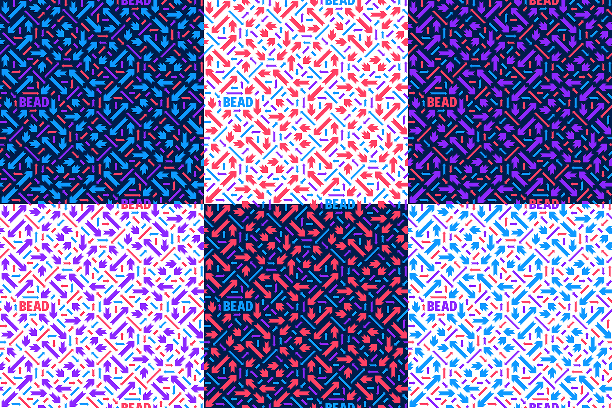 的徽章圖案,可以在白色和深藍色的背景上工作。的另一種圖案,基于logo,瘋狂地放大箭頭。它可以在任何顏色組合的白色和深藍色的背景?!発dsp”我們和客戶都喜歡模式,所以我們做了更多。