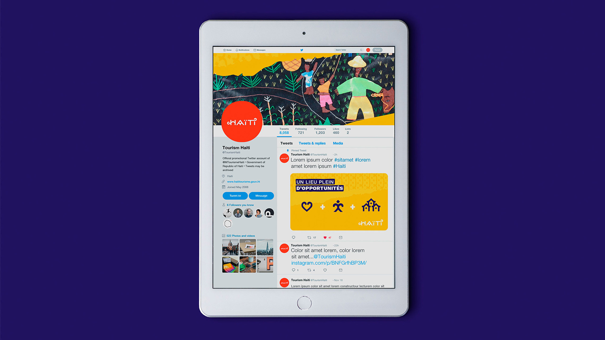 相關引用海地有一個專門用于吸引和促進旅游業的品牌。然而,它需要一個獨特的國家品牌,可以改變它的國際形象,從一個援助國家變成一個經濟機會的國家。“鍛造堅實的機遇”是海地的品牌理念。這一新的戰略平臺使該國成為促進積極經濟和社會發展思想的機會來源。一個基于標志性的海地文化和其土地和自然概念的品牌身份被創造出來,它與海地人民聯系在一起,并向世界推廣他們的文化。除了用拉丁語和克里奧爾語開發的新標志外,還開發了一個品牌標識系統,通過使用富有表現力和色彩豐富的品牌元素和符號,為所有的交流產生框架和形式,來傳遞海地的藝術能量和文化財富。未來品牌項目頁面圖片(點評后)””的拉丁語和克里奧爾語標志。名片。在線呈現。文具和Instagram賬號。Facebook和廣告。Twitter。廣告。“0”展位。身份表示。舊的旅游標志