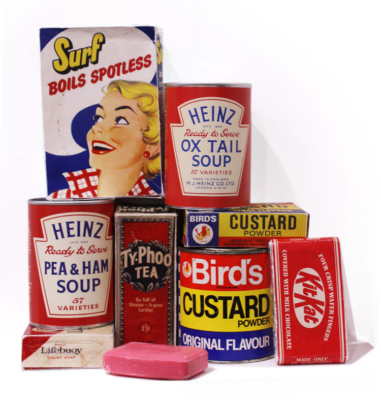 項(xiàng)目中使用museum’年代回憶會(huì)議包括原始的物品從museum’收集的1940年代,1950年代和1960年代和副本,一包有強(qiáng)烈氣味的救生圈等酚肥皂、一罐亨氏牛尾湯或一包洗衣粉沖浪。