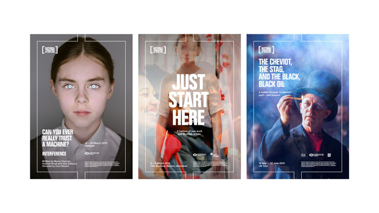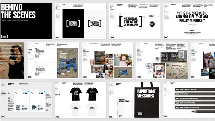 工作室以現有的logo作為起點,由“蘇格蘭國家劇院”的名字組成。兩邊都有方括號。
