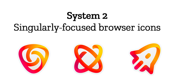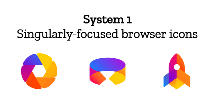 設計系統還包括各種顏色的通用瀏覽器圖標,可以跨桌面使用;特別的瀏覽器圖標,代表Firefox目前正在開發的新瀏覽器,包括其虛擬現實瀏覽器Firefox reality和專注于隱私的移動瀏覽器Firefox Focus;以及Firefox正在開發的新應用程序和服務的圖標。這些都是“;metaphorical”包括火箭、狐貍、鑰匙鎖和郵件符號,以及更抽象的符號。