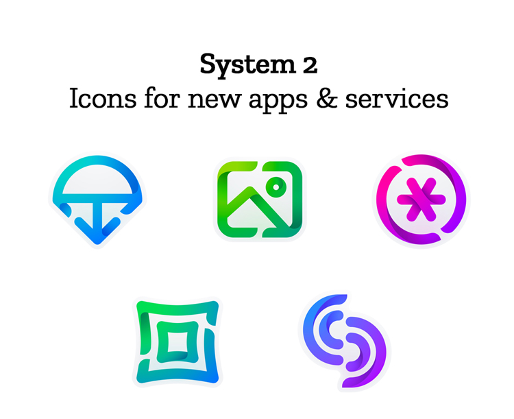 每個系統都圍繞著一個主要的品牌圖標,這個圖標將被應用程序商店等大多數營銷部門使用。一個是抽象的鉆石圖標,另一個是火焰圖標。