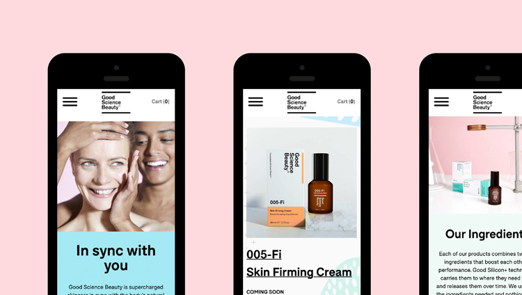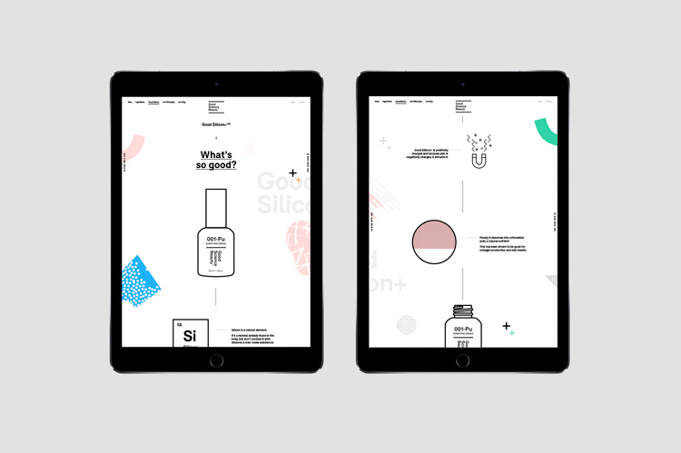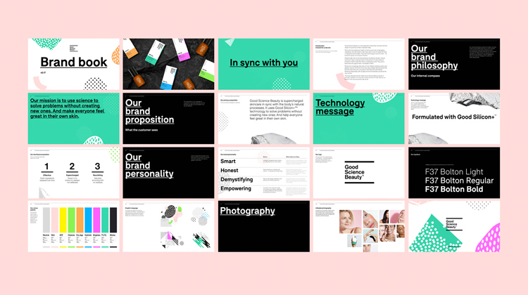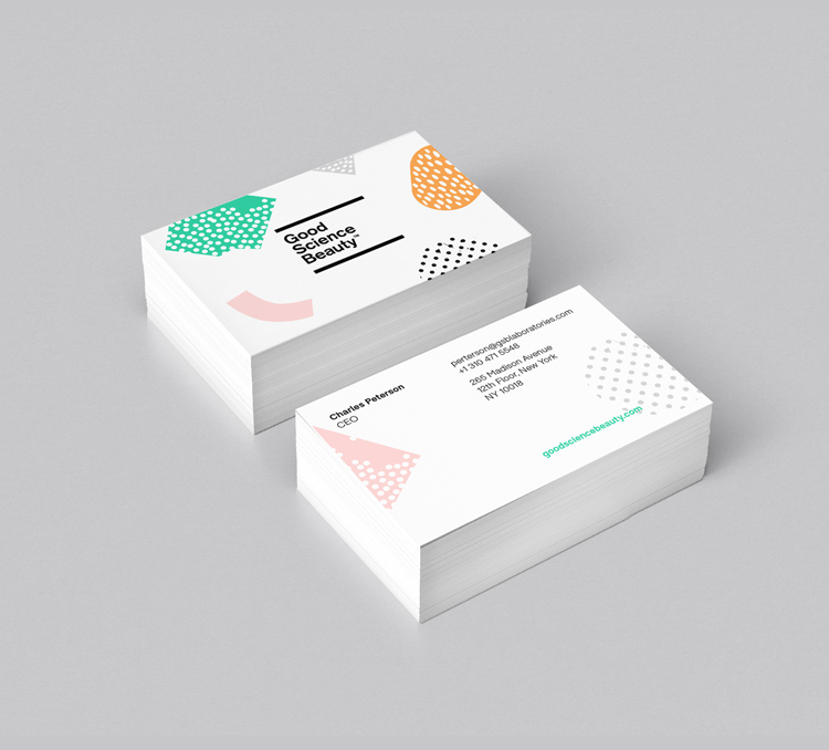 品牌形象塑造的出發(fā)點(diǎn)是彰顯“中性”和“平易近人”的氣質(zhì)。Good Science Beauty的品牌推廣設(shè)計(jì)已經(jīng)擴(kuò)展到商品和包裝、廣告海報(bào)、vis設(shè)計(jì)指南和名片等印刷材料,以及整個(gè)網(wǎng)站和社交媒體平臺(tái)的線上。