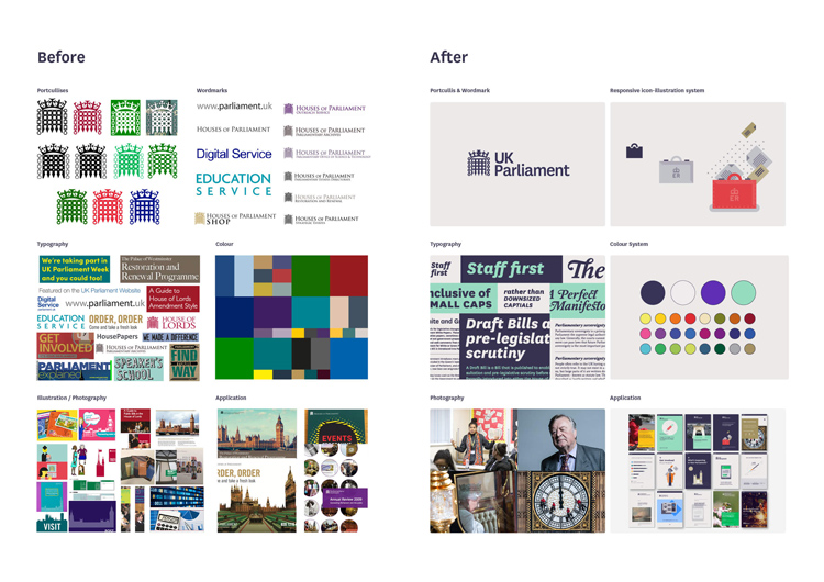 英國議會的視覺識別系統(tǒng)設(shè)計已經(jīng)經(jīng)過兩院政府的審查和更新,因為目前的版本在數(shù)字渠道上并不成功。新版本可以與移動響應(yīng)網(wǎng)站協(xié)同工作,更易于訪問和閱讀。