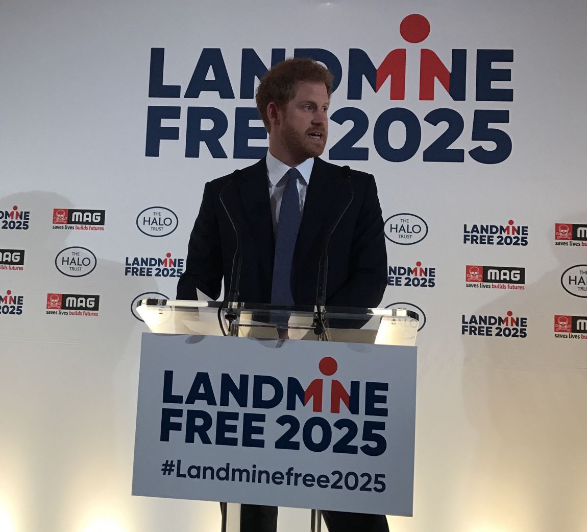 在昨晚肯辛頓宮舉行的活動中,哈里王子發起了“2025年無地雷行動”,這是該品牌首次亮相,英國政府承諾投入1億英鎊。