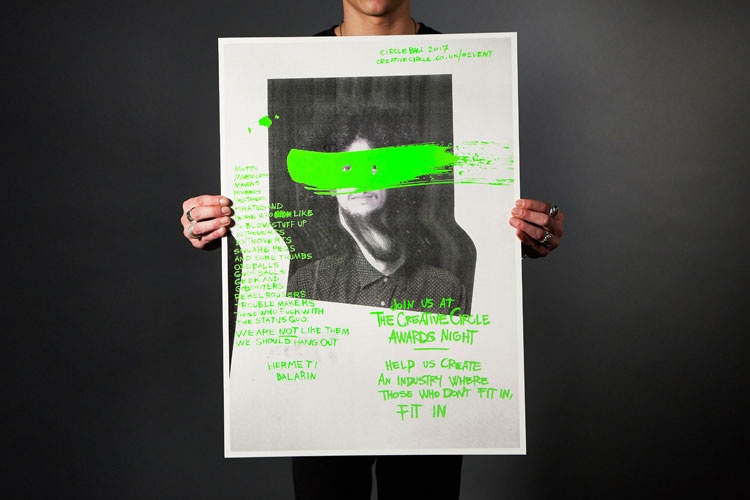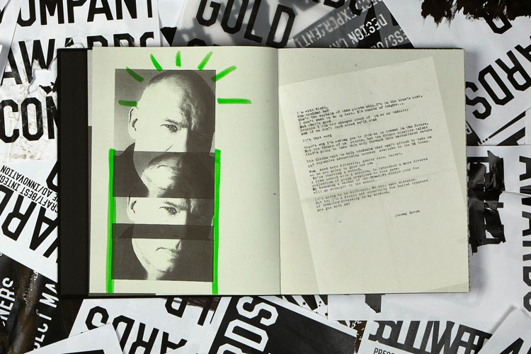這個身份被設計成“無政府主義”“憤怒”,格雷·倫敦說,這本書的新年度封面是預先撕毀和弄亂的頁面,污損了創意圈主席和陪審員的照片,墨水故意濺到書頁上。