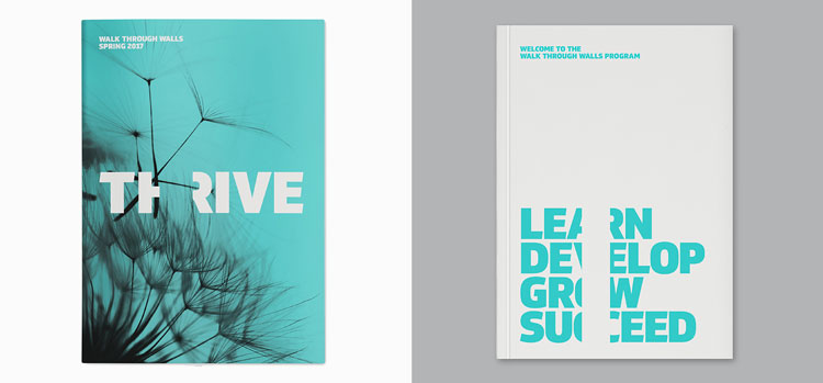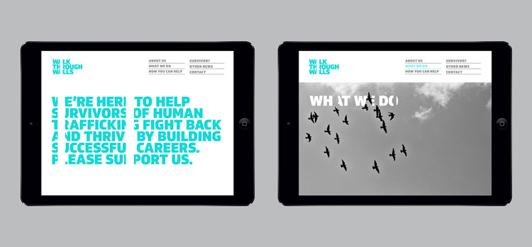 馬克工作室與斯科特·佩里和林賽·坎普合作,從零開(kāi)始創(chuàng)建了這個(gè)品牌,包括“穿越墻壁”這個(gè)名字,它取代了“職業(yè)學(xué)院”這個(gè)工作頭銜。約翰遜銀行(Johnson Banks)的聯(lián)合創(chuàng)始人邁克爾?約翰遜(Michael Johnson)構(gòu)想的《販賣之外的生活》(A strapline A Life Beyond Trafficking)也被采納。